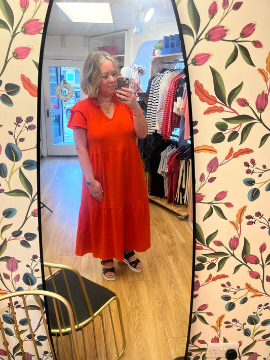 Lifana Cotton Midi Dress - Red