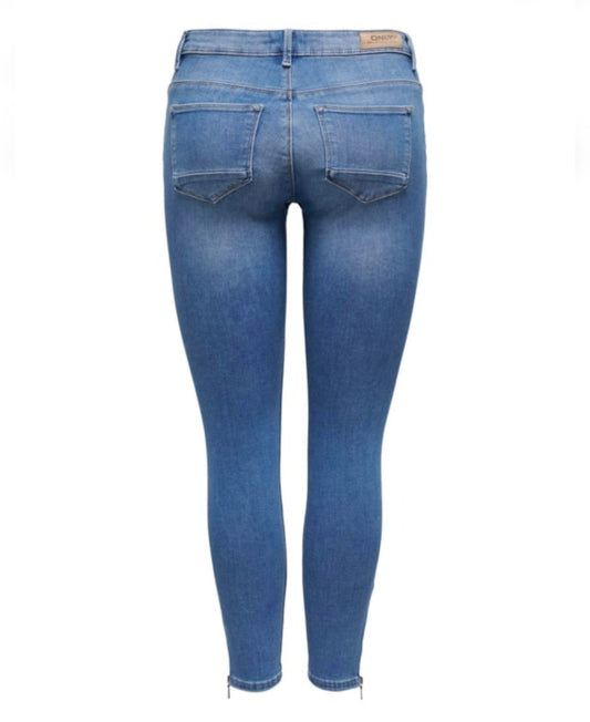 Ankle Grazer Zip Jeans - Mid Blue Denim