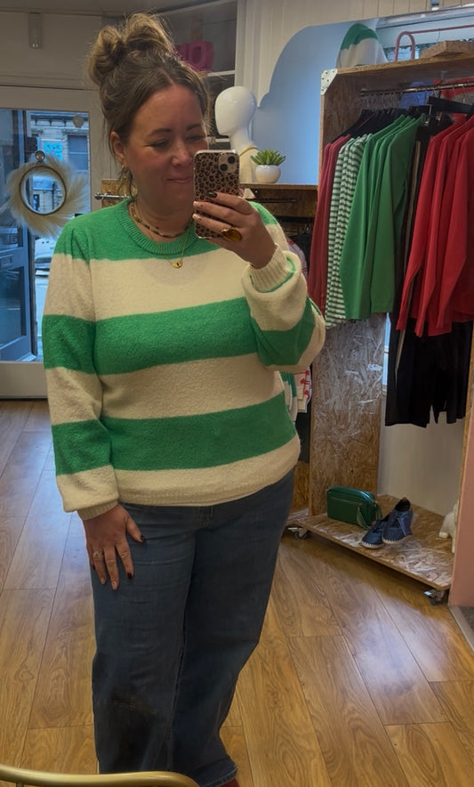 Dusty Stripe Jumper - Cream / Kelly Green