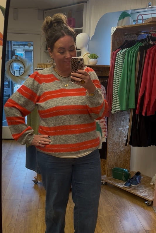 Dusty Stripe Jumper - Grey / Pink