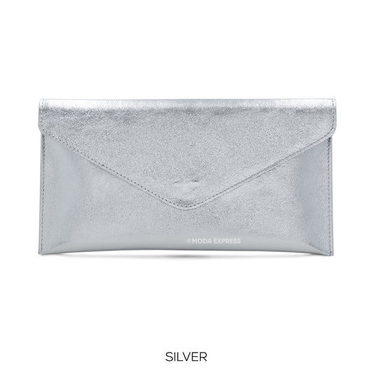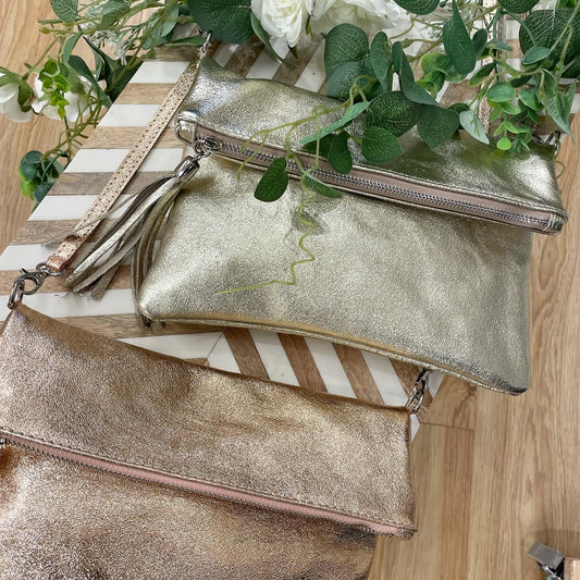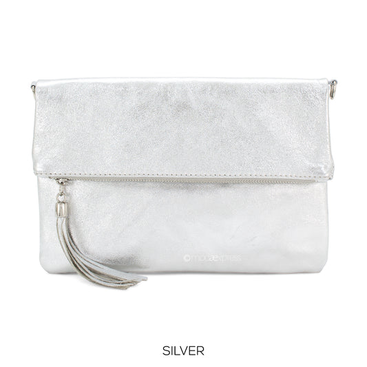 Milly Metallic Foldover Leather Clutch - 2 colours