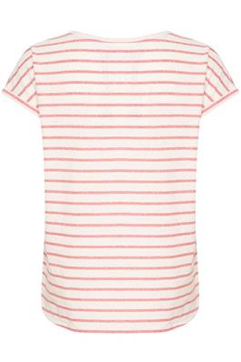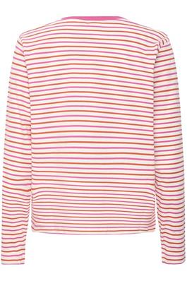 ICHI Long Sleeve Relaxed Fit Multi Stripe Top - Coral and Pink
