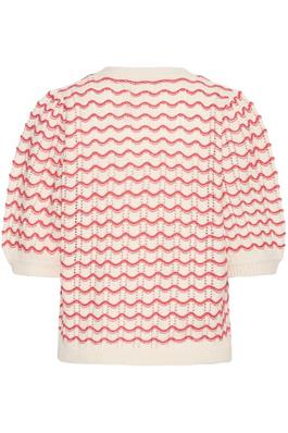 ICHI Short Sleeve Stripe Cardigan - Geranium